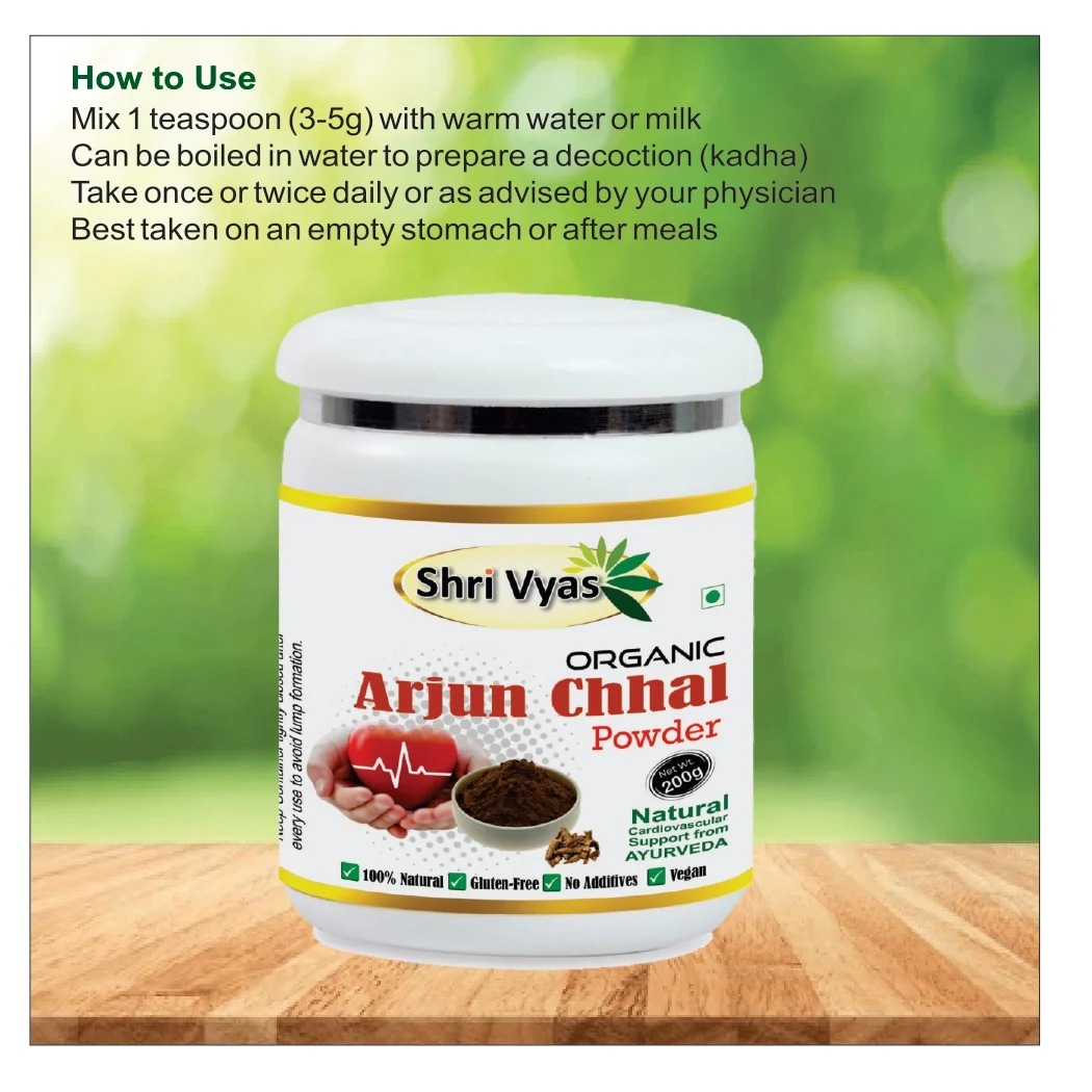 Incorporate Shri Vyas Organic Arjun Chhal Powder into your daily routine to support heart wellness naturally, backed by centuries of Ayurvedic knowledge.
