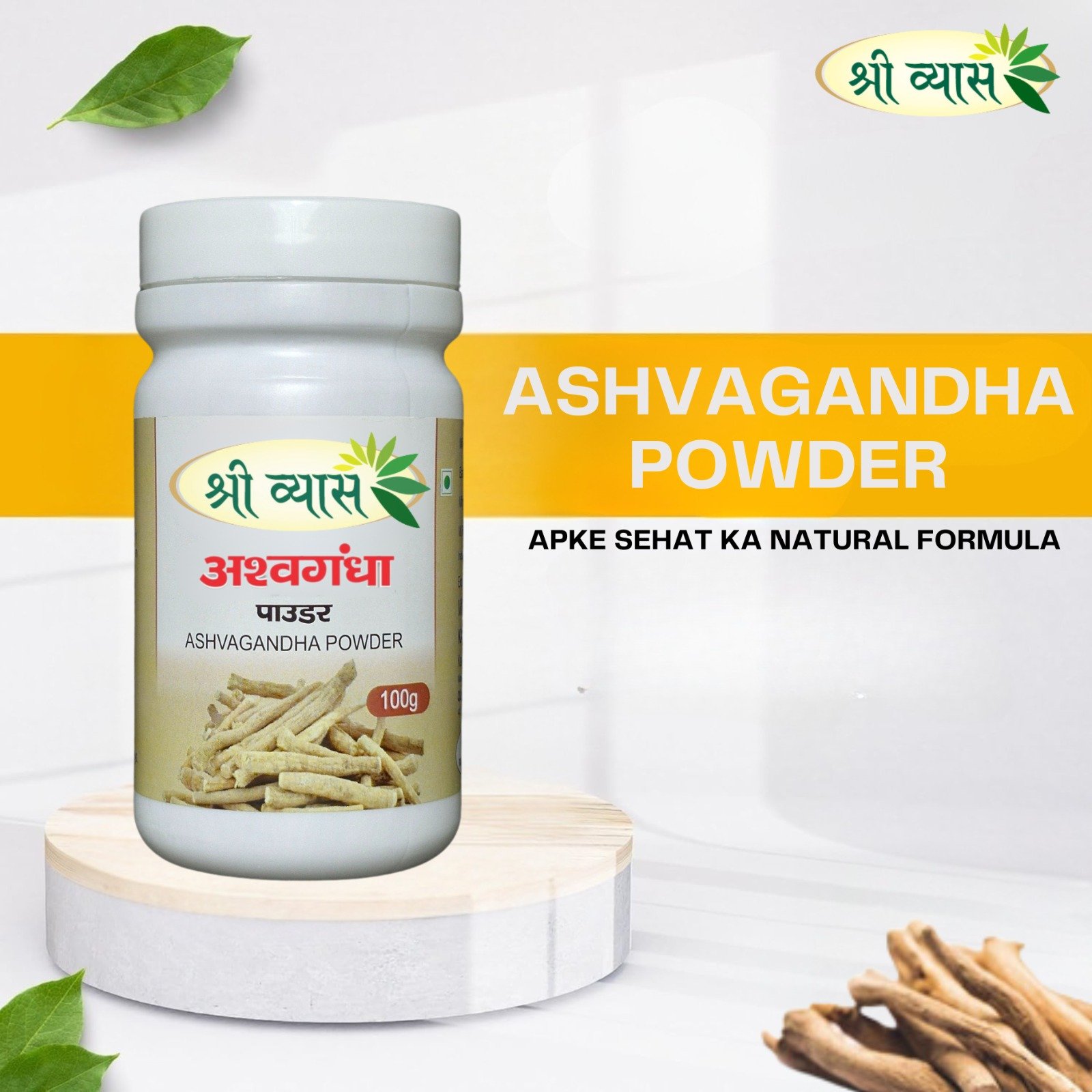 Shri Vyas Ashwagandha Powder is a premium Ayurvedic health supplement crafted from high-quality Ashwagandha roots. Known as the “King of Herbs,” Ashwagandha is widely used in Ayurveda to promote vitality, reduce stress, and enhance overall wellbeing. This pure and natural powder helps support immunity, boosts energy levels, and improves strength and stamina.