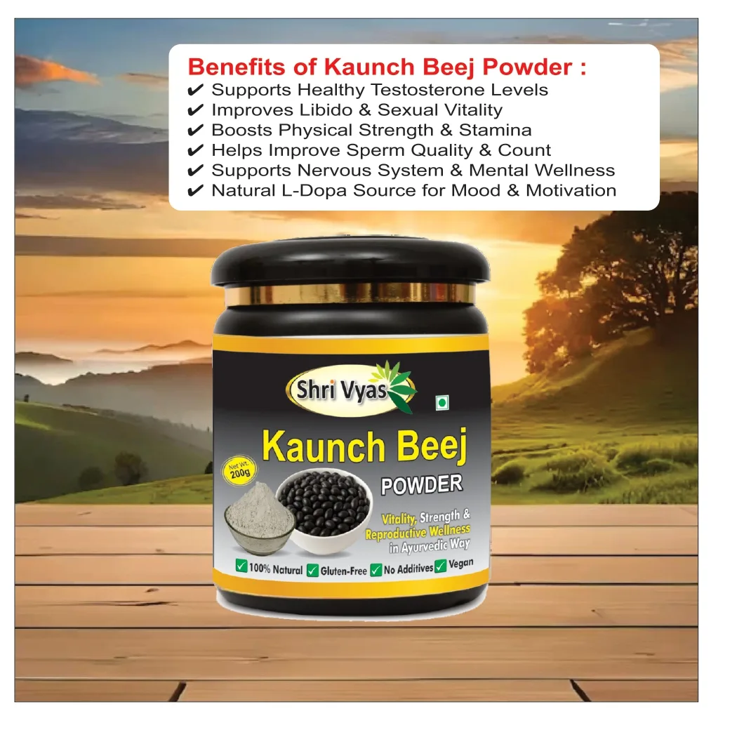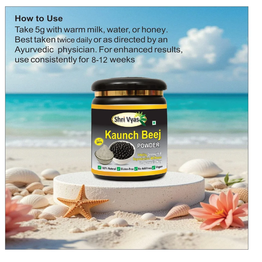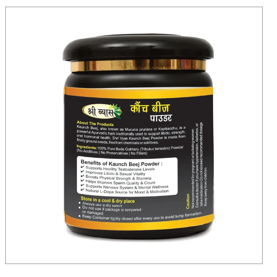 Discover the benefits of Ayurveda with Shri Vyas Kaunch Beej Powder, a high-quality herbal supplement made from carefully selected Kaunch Beej (Mucuna Pruriens) seeds.