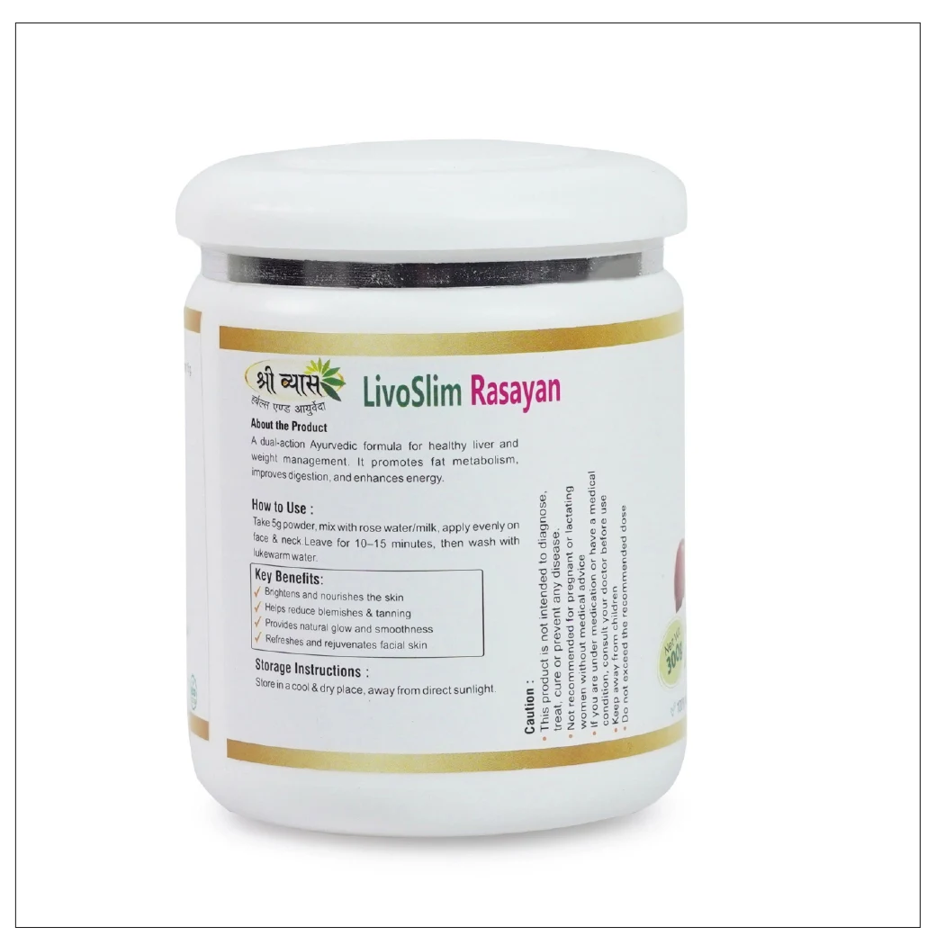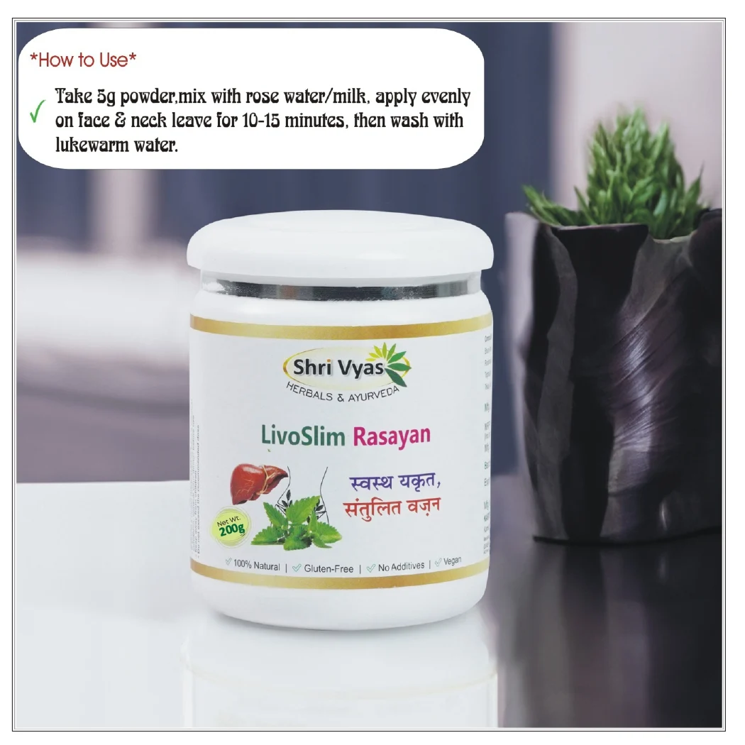 Shri Vyas LivoSlim Rasayan is a meticulously prepared, 100% natural Ayurvedic formula that recognizes the critical link between liver health and effective weight management. This Rasayan is a blend of specialized herbs designed to restore the “स्वस्थ यकृत” (Healthy Liver), which is essential for efficient fat metabolism, thereby leading to “संतुलित वजन” (Balanced Weight).
