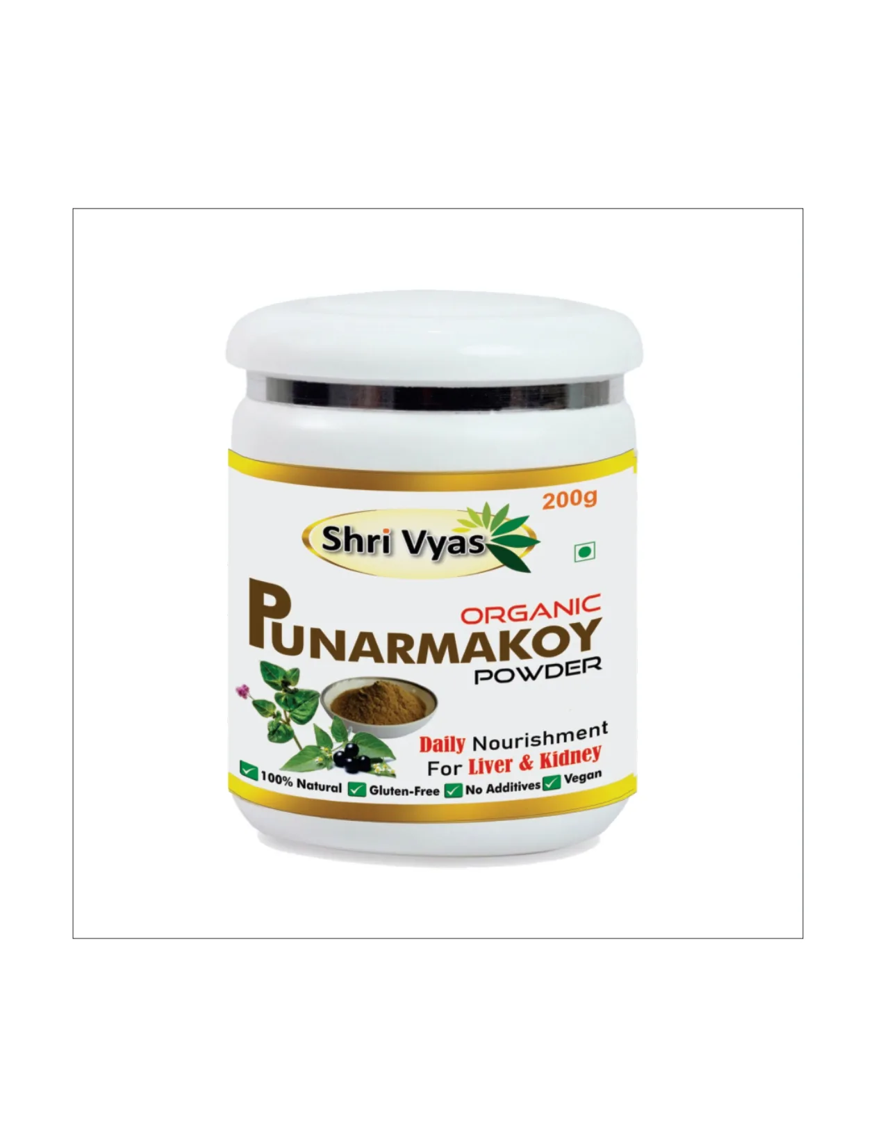 Shri Vyas Organic Punarnavakoy Powder – Ayurvedic Herbal Powder for Daily Wellness Support | 100% Natural, Gluten-Free, Vegan | No Additives | 200g