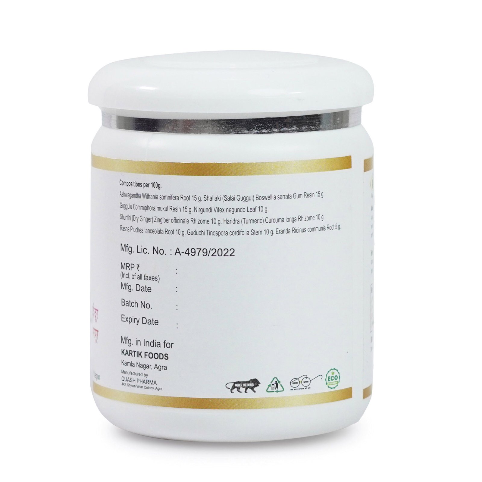 Vata-Balancing Action: Specifically targets and pacifies aggravated Vata, which is the key cause of joint stiffness and pain (Sandhivat Nashak).