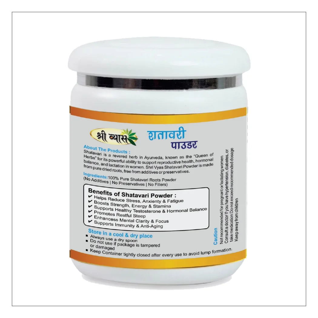 Experience the benefits of Ayurveda with Shri Vyas Shatavari Powder, a premium herbal formulation made from high-quality Shatavari (Asparagus racemosus) roots.