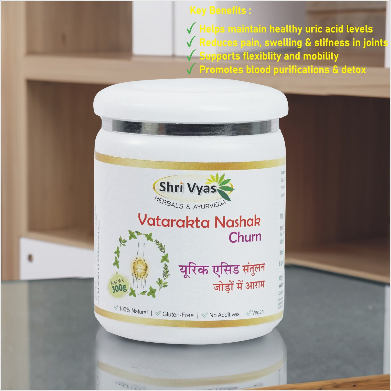 Shri Vyas Vatarakta Nashak Churn is a powerful Ayurvedic uric acid control powder crafted to support individuals struggling with gout, high uric acid, joint stiffness, and inflammation. Rooted in classical Ayurvedic principles, this herbal blend works by balancing Vata and Rakta, offering effective relief from joint discomfort, swelling, and pain associated with Vatarakta (Gout).
